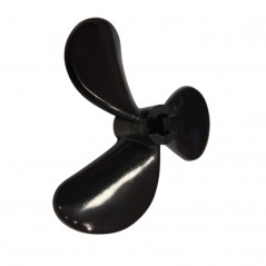 Hélice para barco RC de Nylon tripala con 56mm de díametro y 13mm de paso para giro a derecha, el agujero central es para eje de 5mm y está diseñado para fijación Bull Nose que consiste en un rebaje en el hub de la hélice para evitar que la pala patine sobre la transmisión