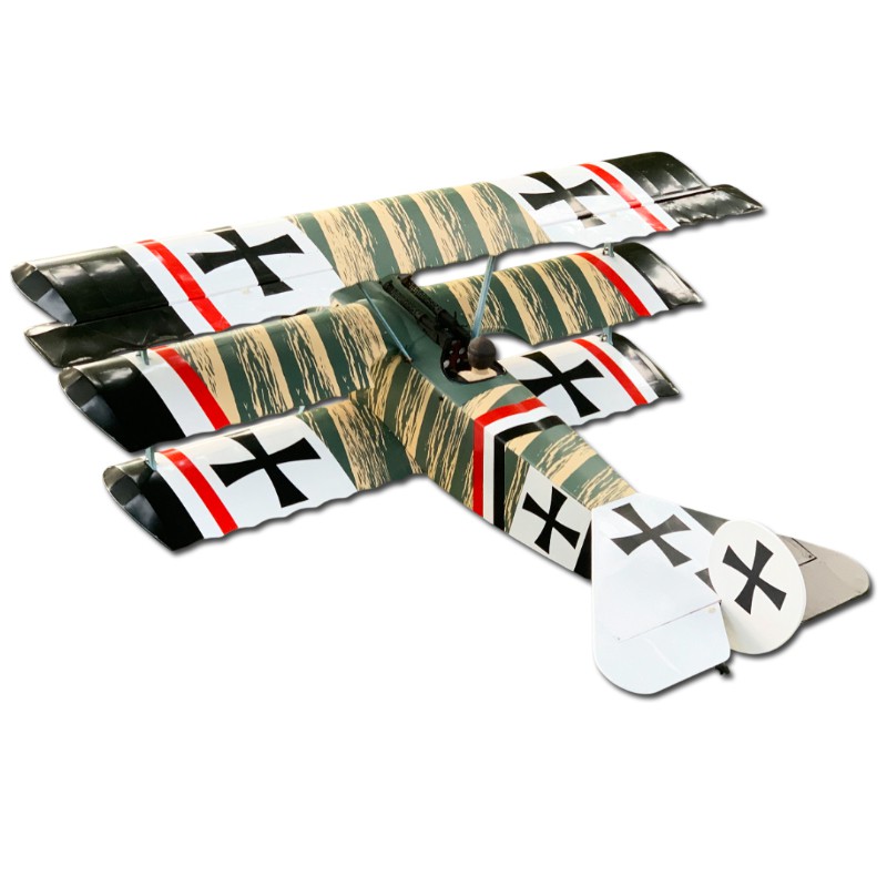 VQ Model presenta el Fokker DR-1 en su popular tamaño (25-30 cc). Dispones de numerosas opciones de potencia, desde motor nitro de 4 tiempos de 140 CV, motor de gasolina de 2 tiempos de 25 cc, motor de gasolina de 4 tiempos de 30 cc, motor eléctrico (Boost de 140 CV) y, sobre todo, se integra a la perfección con el Saito FG-33R3. Además, cuenta con numerosos detalles a escala, como una ametralladora, un volante y un piloto de la Primera Guerra Mundial. Todo esto convertirá a tu Fokker DR-1 en el Fokker DR-1ARF más a escala de tu campo de vuelo.