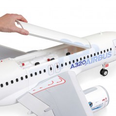 No se requiere pegamento para el montaje, y el ala de dos piezas con estabilizadores separados se instala rápida y fácilmente sin herramientas, por lo que el A320neo estará listo para volar en un abrir y cerrar de ojos. El fuselaje ligero, reforzado con EPO compuesto, está disponible con acabado de fábrica en la decoración especial "neo" de Airbus, completamente pintada con las calcomanías ya aplicadas