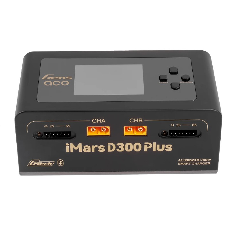 El Gens Ace iMars D300 Plus es un nuevo cargador inteligente de doble canal basado en el D300. Conserva las características principales del sistema G-Tech e incorpora control remoto Bluetooth. Los entusiastas del RC ahora pueden usar la app Gens Ace para gestionar y consultar más datos e historiales en tiempo real, lo que hace que la experiencia sea más sencilla, eficiente y segura.