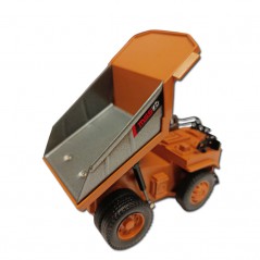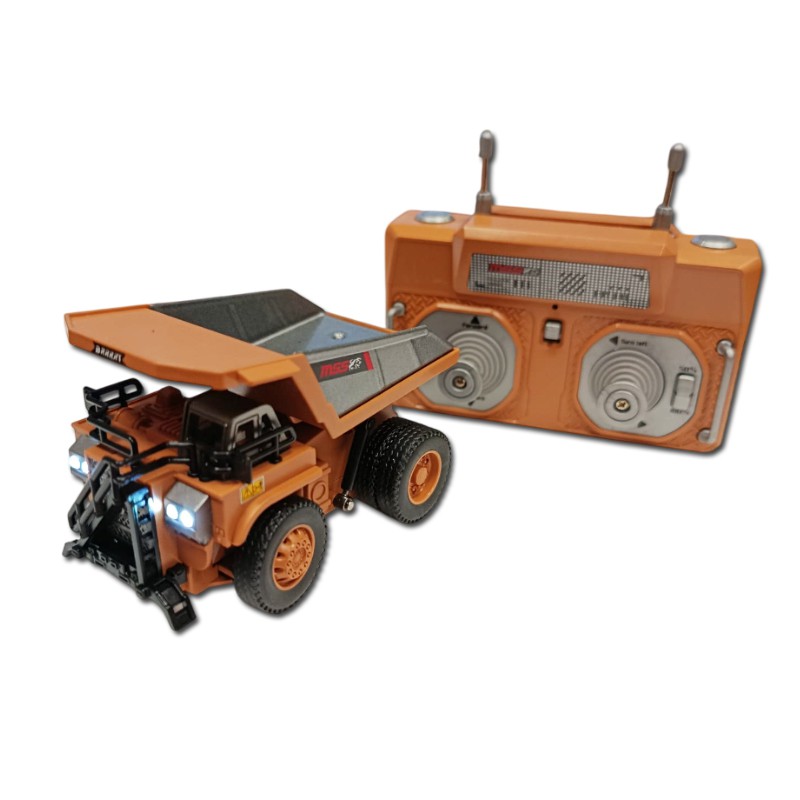 Volquete de escala 1/64 con batería recargable por USB control proporcional y 2 velocidades de control (100% y 30% para un control preciso), la dirección es totalmente proporcional y tiene luces delanteras y partes metálicas.
