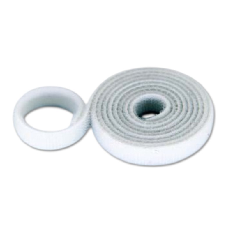 10x1000mm. Color Blanco. Fijación con cinta de velcro. Sujeción de quita y pon. En una cara los bucles y en la otra cara de la misma cinta, los ganchos.